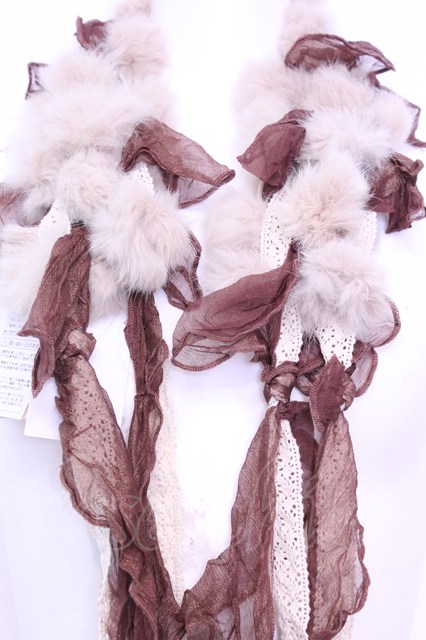 axes femme / ラビットファーぽんぽんストール ブラウン O-25-12-01-028-AX-ZA-IG-OS