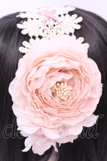 Innocent World / ラナンキュラスの乙女ヘッドドレス 生成り*ピンク O-25-12-01-046-IW-AC-IG-OS