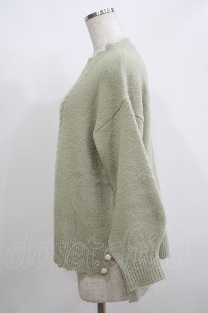 axes femme / 裾ボタンロングニットプルオーバー M グリーン H-25-12-09-049-AX-TO-NS-ZH
