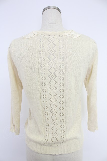 axes femme / モチーフレース襟透かし編みカーデ M キナリ T-25-12-03-007-AX-TO-SA-ZT