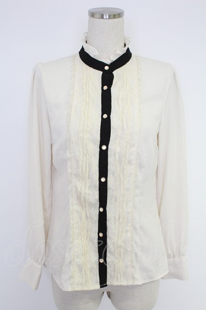 axes femme POETIQUE / レース切り替えブラウス アイボリーX黒 T-25-12-03-010-AX-BL-SA-ZI