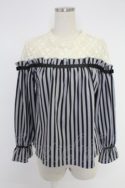 axes femme / レース切替レジメカットプルオーバー ブルーX黒X生成り T-25-12-03-012-AX-TO-SA-ZT