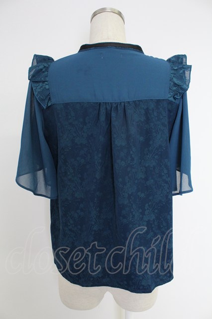 axes femme / ジャカードチャイナブラウス 青 T-25-12-03-017-AX-BL-SA-ZI