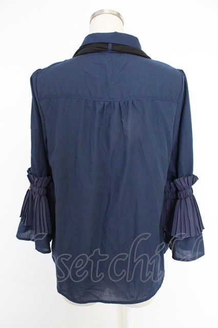 axes femme POETIQUE / 袖プリーツフリル使いブラウス ネイビー T-25-12-03-019-AX-BL-SA-ZI