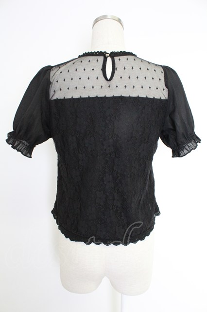axes femme POETIQUE / ドットチュール&レース切り替え半袖トップス 黒 T-25-12-03-022-AX-TO-SA-ZT [戻る]