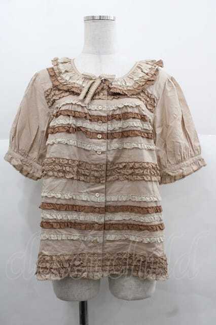 PINK HOUSE / 配色フリル使いブラウス ブラウン I-25-12-02-001-LO-BL-SA-ZT198
