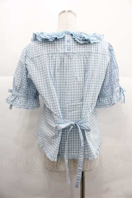 PINK HOUSE / ギンガムチェックパッチワークフリルブラウス サックス I-25-12-02-005-LO-BL-SA-ZT210