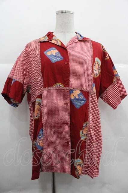 PINK HOUSE / キューピー柄パッチワークシャツ レッド I-25-12-02-017-LO-BL-SA-ZI