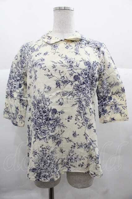 PINK HOUSE / 丸襟チャイナボタン花柄ブラウス キナリ×ブルー I-25-12-02-027-LO-BL-SA-ZT221
