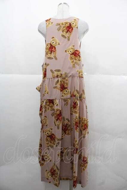 WONDERFUL WORLD / テディベア柄たくし上げジャンパースカート ピンク I-25-12-02-059-LO-OP-SA-ZI