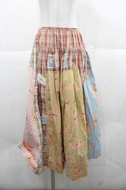 PINK HOUSE / チェック&キューピー柄パッチワークスカート ピンク I-25-12-02-085-LO-SK-SA-ZI