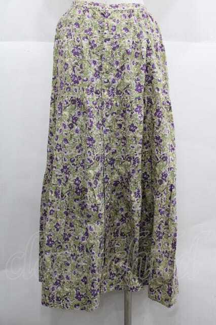 PINK HOUSE / すみれ柄スカート グリーンX白X紫 I-25-12-02-090-LO-SK-SA-ZI