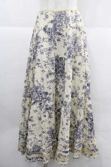 PINK HOUSE / 花柄裾フリルスカート キナリ×ブルー I-25-12-02-091-LO-SK-SA-ZI