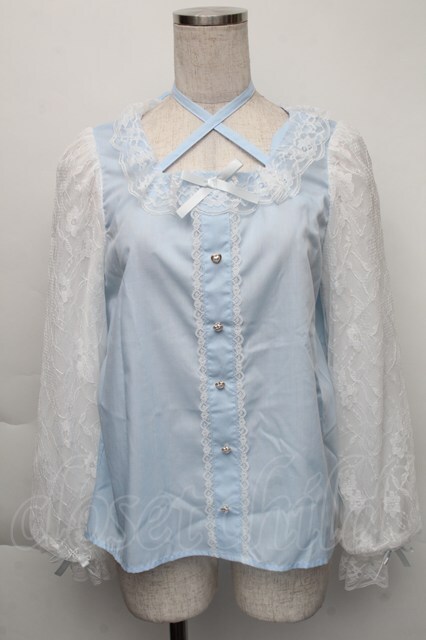 Lovely Tency / alsチョーカーレースブラウス M サックス S-25-12-01-007-LO-BL-AS-ZT143