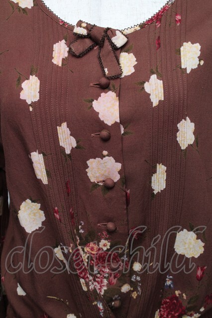 KETTY / カーネーション風プリントブラウス ブラウンX白 S-25-12-01-019-EL-BL-SA-ZT167