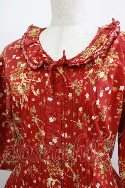 PINK HOUSE / いちご柄ワンピース Free レッド H-25-12-10-005-LO-OP-NS-ZH