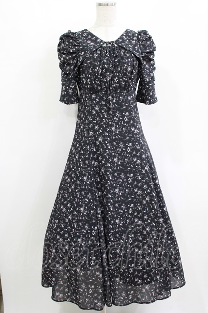 An MILLE / 花柄ロングワンピース Free ブラック H-25-12-10-017-EL-OP-NS-ZH
