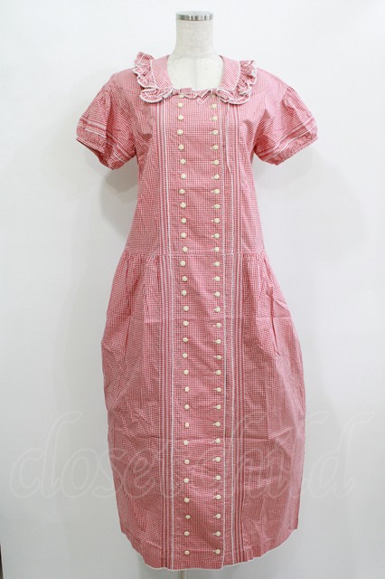 PINK HOUSE / ギンガムチェックパッチワークワンピース Free レッド H-25-12-10-008-LO-OP-NS-ZH