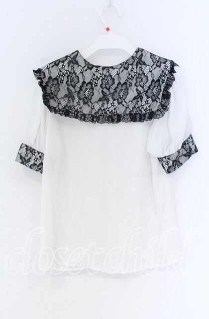 Ank Rouge / レースセーラーカラーブラウス シロ×クロ O-25-12-02-1065-CA-BL-IG-OS