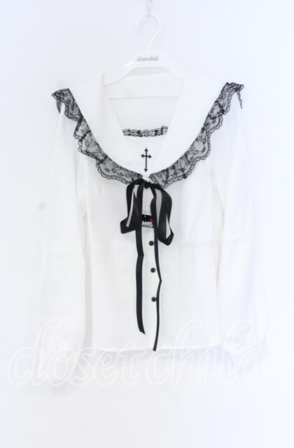MA*RS / クロス刺繍セーラー襟ブラウス シロ×クロ O-25-12-02-1055-EL-BL-IG-OS [戻る]