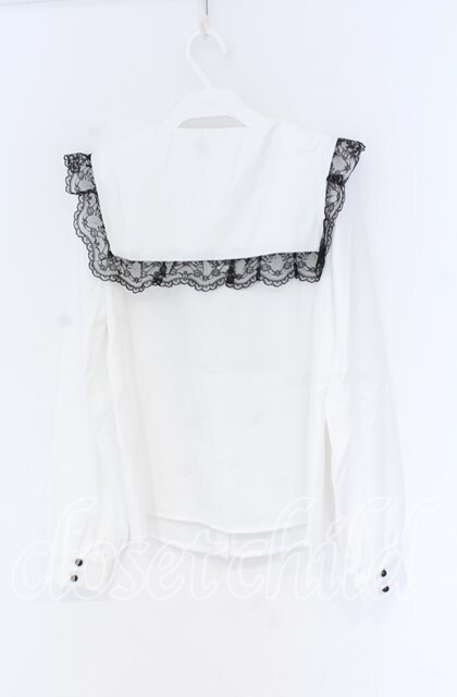 MA*RS / クロス刺繍セーラー襟ブラウス シロ×クロ O-25-12-02-1055-EL-BL-IG-OS