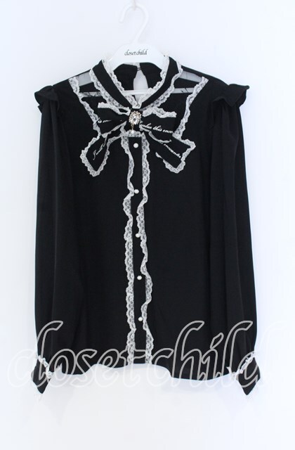 Rojita / レース切り替えロゴリボンブラウス クロ O-25-12-02-1061-LO-BL-IG-OS