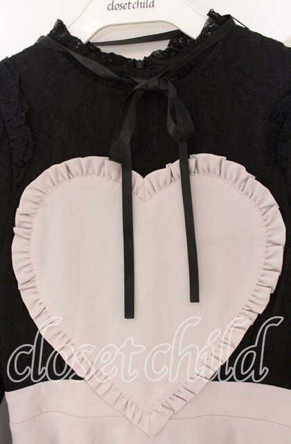 Honey Cinnamon / ハート貼付けレースワンピース クロ×ピンクベージュ O-25-12-02-1072-LO-OP-IG-OS
