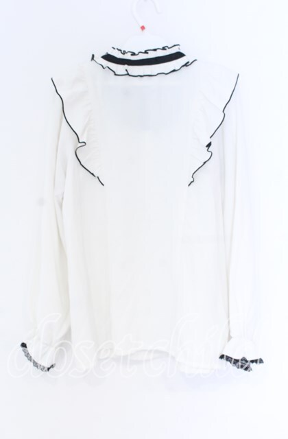 Rojita / デコルテ開きラッフルボリュームブラウス シロ×クロ O-25-12-02-1051-LO-BL-IG-OS