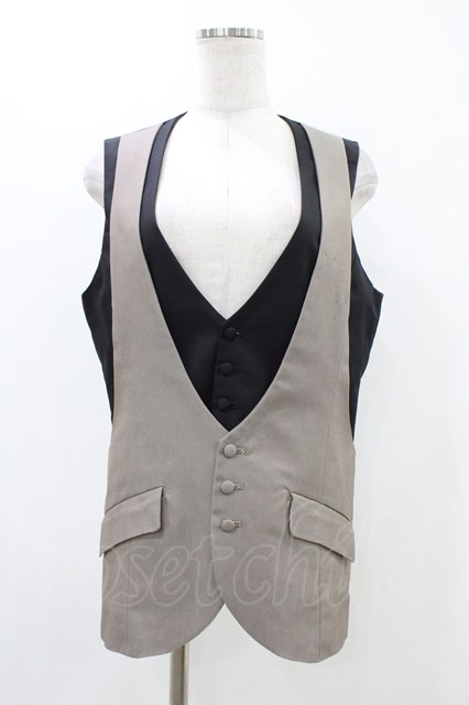 GADGET GROW / レイヤード風ベスト 黒×グレージュ H-25-12-09-1044-GO-TO-KB-ZH [戻る]