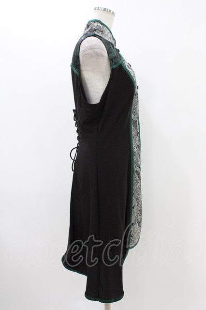 Qutie Frash / チャイナチュニック 黒×グリーン H-25-12-09-1021-QU-TO-KB-ZH