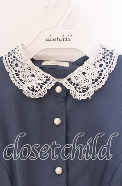 m petit by misako / AM*レースエリプリーツワンピース L ブルー O-25-12-04-028-LO-OP-OW-OS