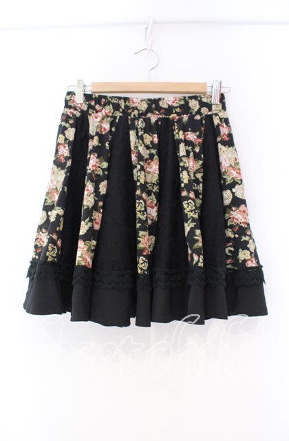 axes femme / 花柄パッチワークスカート M クロ O-25-12-04-008-AX-SK-OW-OS