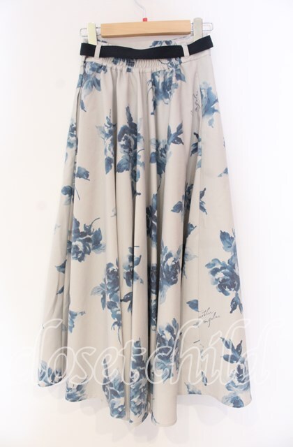 an another angelus / ベルト付きアートローズ柄フレアースカート【洗える】 F ブルー O-25-12-04-017-CA-SK-OW-OS