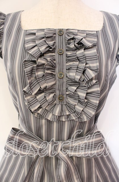 Victorian maiden / レジメンタルストライプフリルドレス グレー O-25-12-04-066-CL-OP-IG-OS