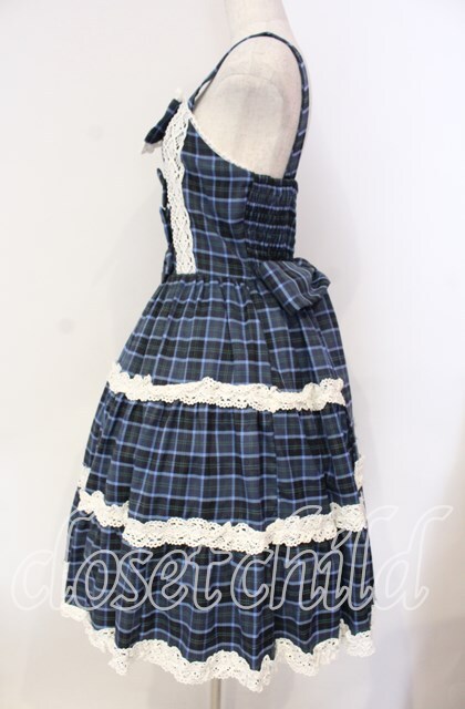 axes femme Kawaii / タータンチェックジャンスカ M アオ O-25-12-04-059-AX-OP-OW-OS