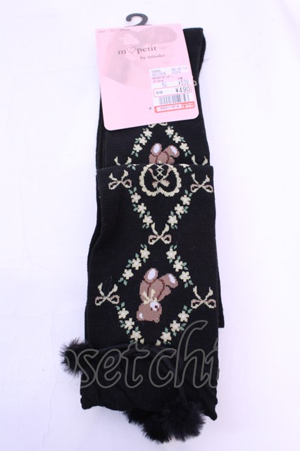 m petit by misako / AMOKクマポンポン オーバーニーソックス 23〜25cm クロ O-25-12-04-1041-LO-ZA-OW-OS [戻る]