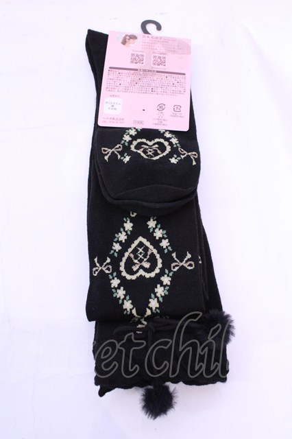m petit by misako / AMOKクマポンポン オーバーニーソックス 23〜25cm クロ O-25-12-04-1041-LO-ZA-OW-OS