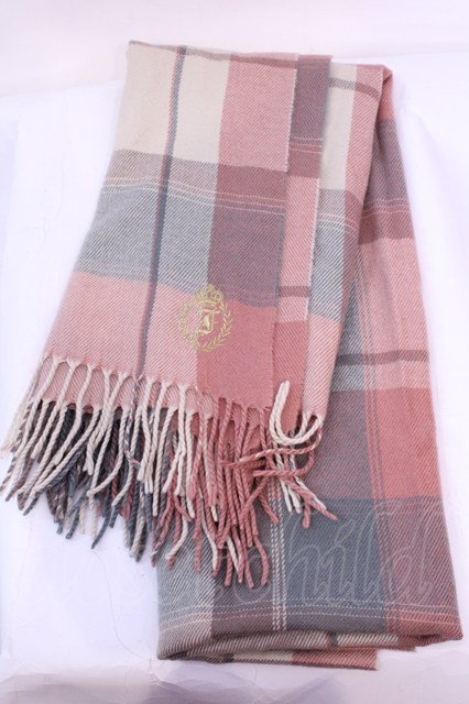 Fi.n.t / フレーム刺繍入りチェックストール ピンク O-25-12-04-1063-CA-ZA-OW-OS