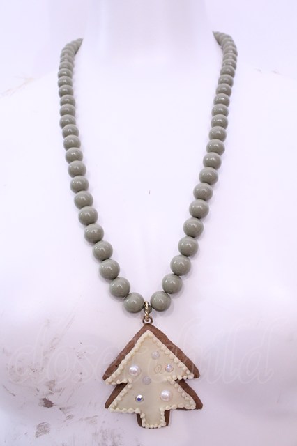 Q-pot. / スノーツリーシュガークッキーネックレス グリーン×アイボリー O-25-12-04-1015-QP-AC-OW-OS [戻る]