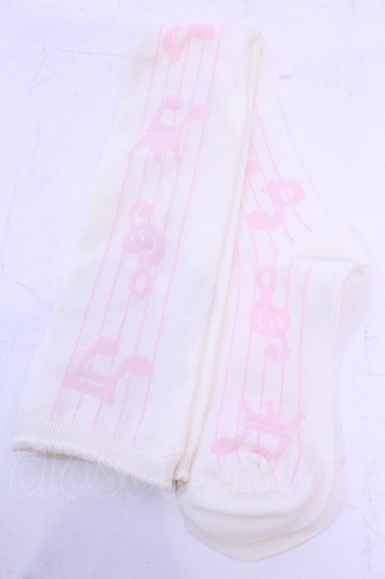 Angelic Pretty / メロディドールオーバーニーソックス シロ×ピンク O-25-12-04-1051-AP-ZA-OW-OS