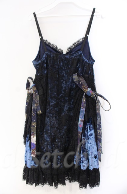 Qutie Frash / クモメッシュリボンブローチ付ベビードール ブルー×ブラック O-25-12-03-003-QU-OP-IG-OS