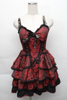 GOTH / バラ柄ジャンパースカート 黒x赤 S-25-12-04-056-GO-JA-HR-ZS