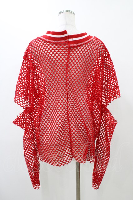 Candy Stripper / CUT OFF SLEEVE MESH トップス レッド H-25-12-12-048-PU-TO-KB-ZT465