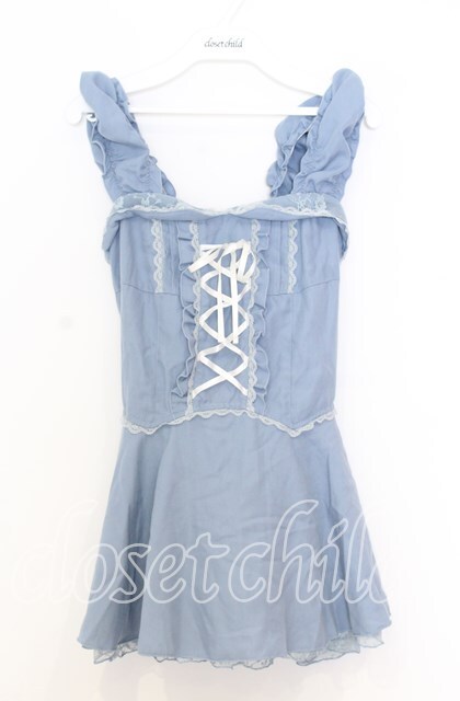 axes femme / 編み上げペプラムビスチェ M ブルー O-25-12-05-047-AX-TO-YM-OS
