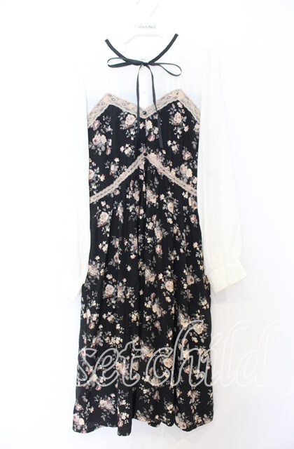 axes femme / ビスチェ切替バラ柄ワンピース M クロ×アイボリー O-25-12-05-085-AX-OP-IG-OS [戻る]