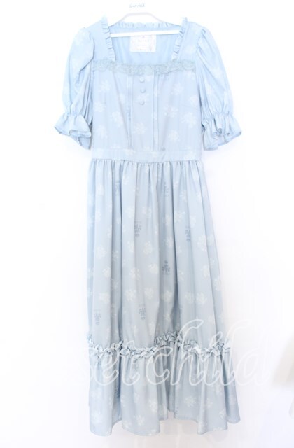 m petit by misako / NINA'S 花柄スクエアネックワンピース M サックス O-25-12-05-023-LO-OP-IG-ZT013 [戻る]