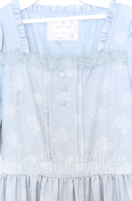 m petit by misako / NINA'S 花柄スクエアネックワンピース M サックス O-25-12-05-023-LO-OP-IG-ZT013