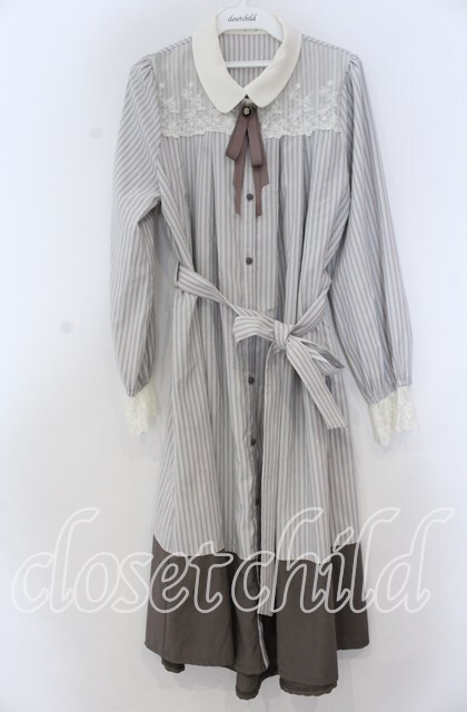 axes femme / 襟付バイカラーワンピース M グレージュ O-25-12-05-1019-AX-OP-OW-ZT013