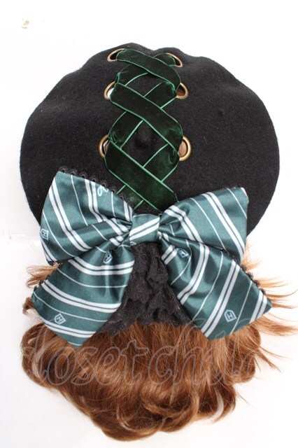 ATELIER PIERROT / ハリー・ポッター リボンブローチ付きレースアップベレー帽 スリザリン(グリーン) Y-25-12-05-033-EL-AC-KB-ZY [戻る]
