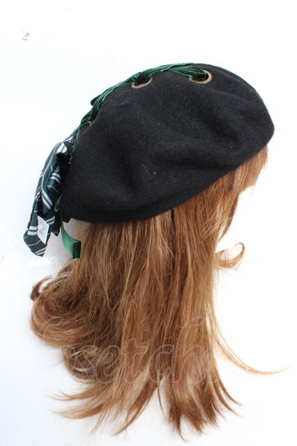 ATELIER PIERROT / ハリー・ポッター リボンブローチ付きレースアップベレー帽 スリザリン(グリーン) Y-25-12-05-033-EL-AC-KB-ZY